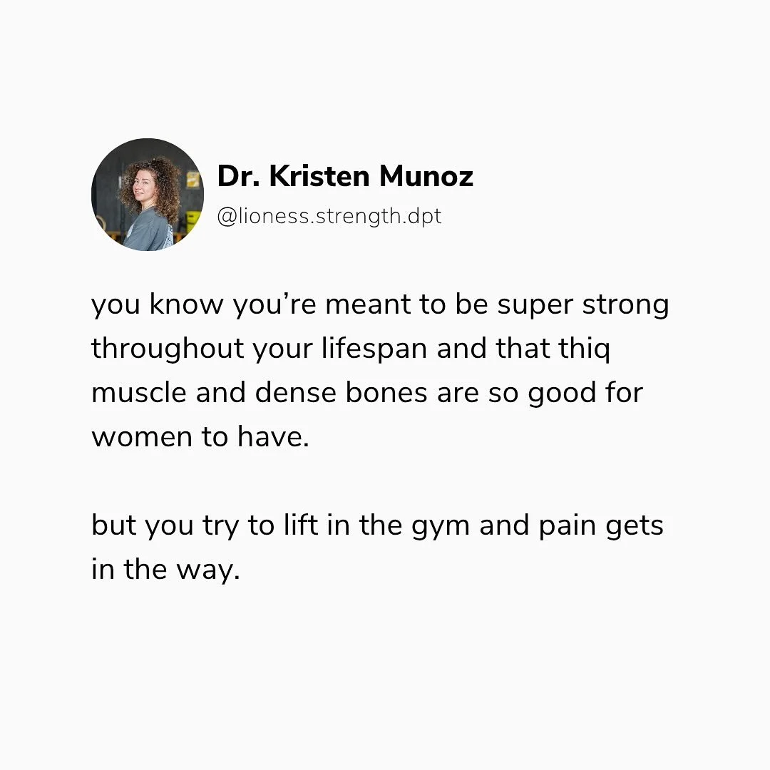 I help women who lift stay in the gym by adapting their training so they can rebuild strength, train pain-free, and feel confident in their bodies again.”
